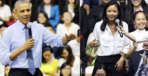 Khi giao lưu với Tổng thống Obama sáng 25/5, Suboi đặt câu hỏi: "Ông đã nói nhiều điều về môi trường, giáo dục, kinh tế, TPP, ông có thể chia sẻ về việc nước Mỹ làm cách nào để thúc đẩy phát triển nghệ thuật và âm nhạc?"
