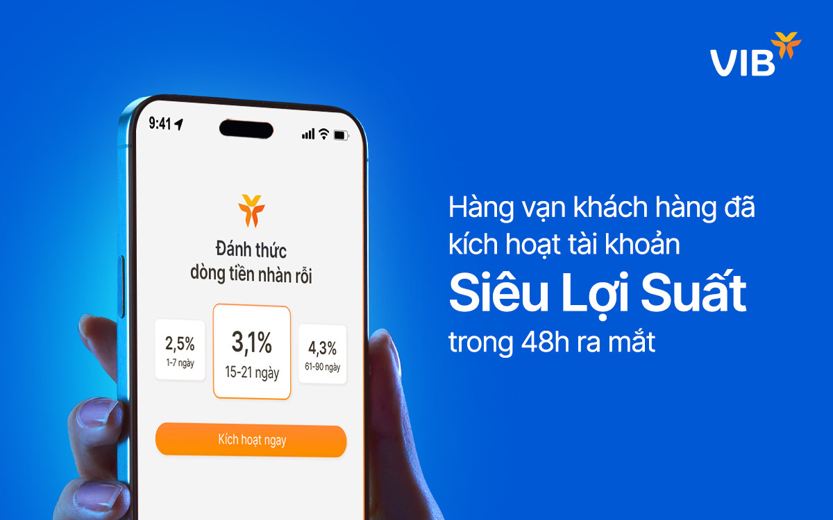 VIB đã đánh thức một tư duy mới, đó là mọi khoản tiền nhàn rỗi đều có thể sinh lời mỗi ngày. Với tài khoản Siêu Lợi Suất, VIB giúp khách hàng có thể tận dụng tối đa dòng tiền trong tài khoản thanh toán để hưởng lợi suất hấp dẫn.