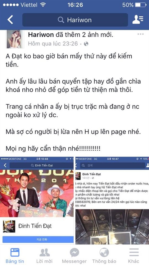 Trước đó, ngay khi phát hiện sự bất thường trên trang cá nhân (có thể bị hack tài khoản facebook) của người yêu cũ, Hari Won vội vàng lên tiếng đính chính và bảo vệ anh.
