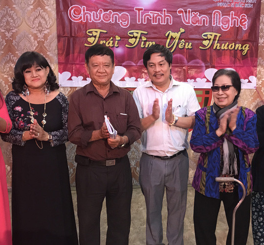 NSƯT Ngọc Hương đại diện Khu Dưỡng lão Nghệ sĩ TP HCM cảm ơn ông Hoàng Hải - Chủ tịch Tâp đoàn An Nông đến trao tặng quà trong chương trình "Trái tim yêu thương" tại Khu Dưỡng lão NS TP HCM
