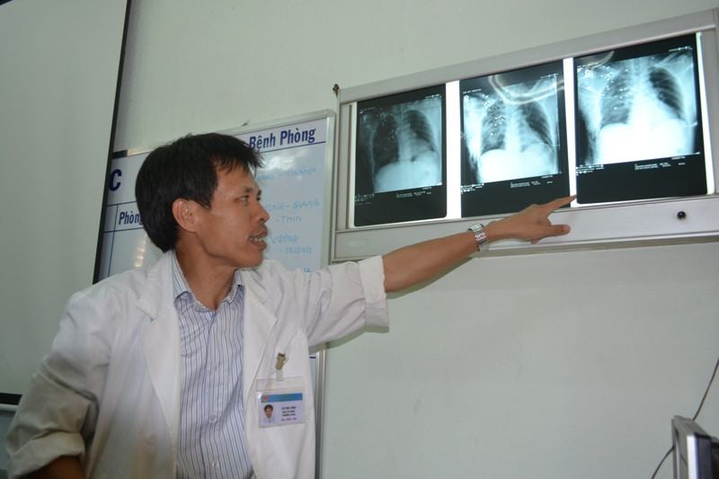 | Vẫn còn hơn 20 mãnh đạn hoa cải găm vào phổi nạn nhân. Ảnh L.N. |