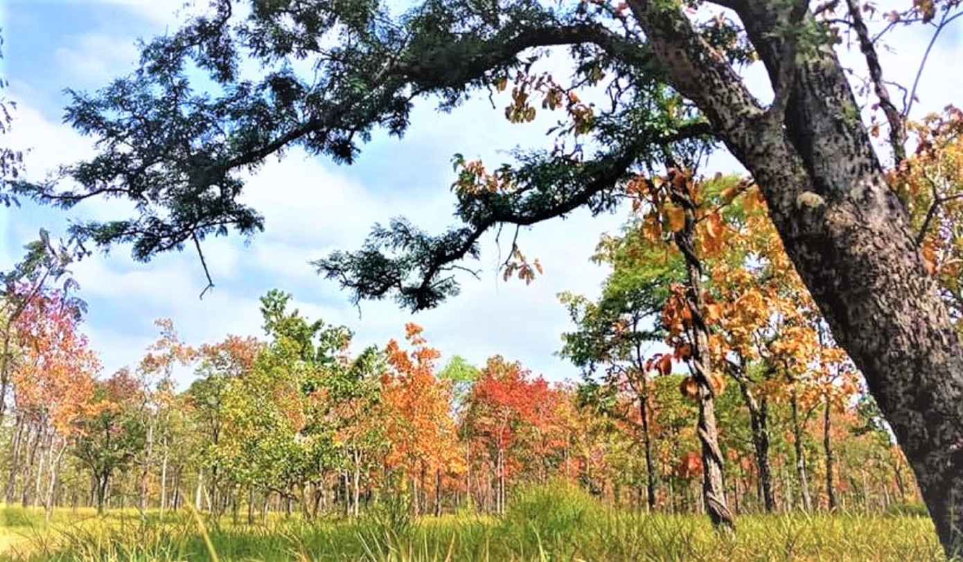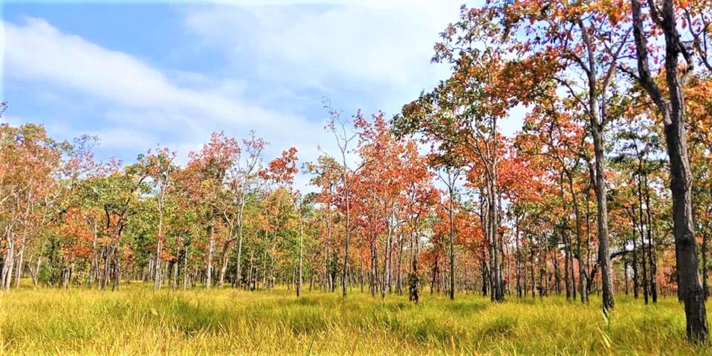 Khi mưa rừng dứt, ánh mặt trời chiếu gắt hơn báo hiệu mùa xuân về. Rừng cây bắt đầu chuyển sắc từ xanh sàng vàng rồi dần rụng đi trước khi mùa khô gõ cửa. Đây được xem là đợt thay lá đẹp nhất trong năm.