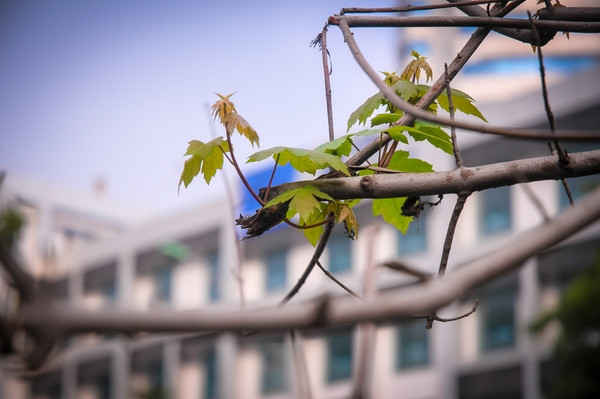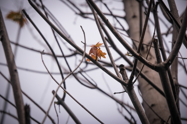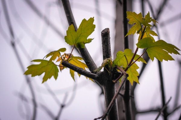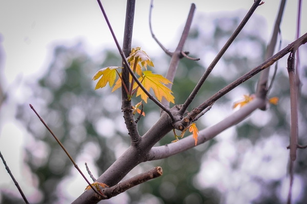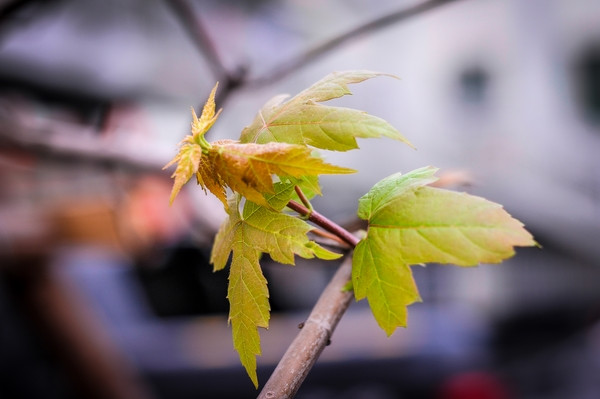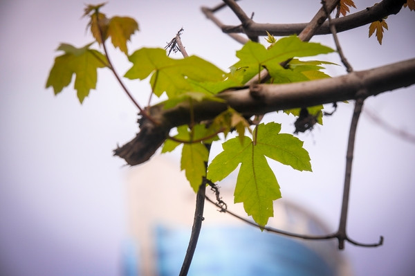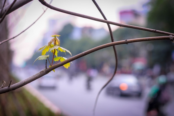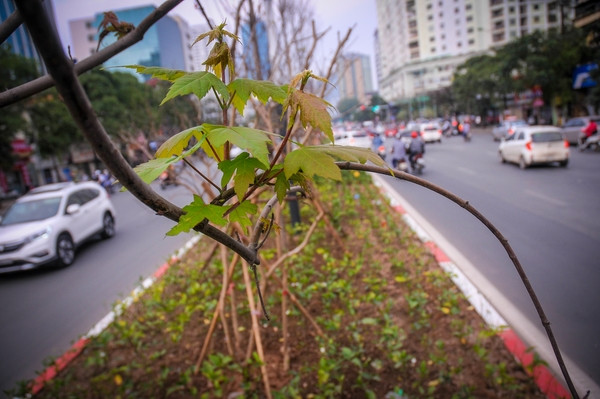 Những cây phong được trồng trên một số tuyến phố Hà Nội đã bắt đầu ra lá, gây sự chú ý với nhiều người đi đường.