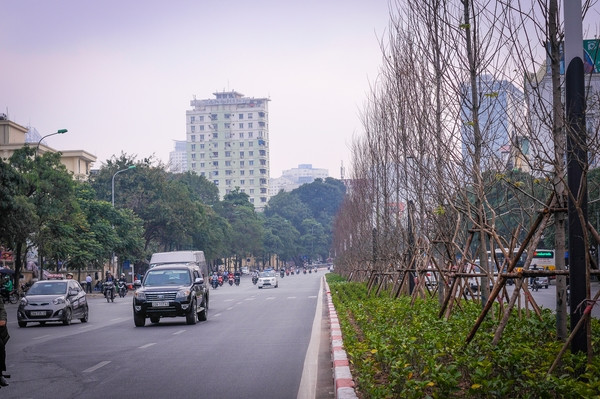 Hàng trăm cây phong được trồng trên dải phân cách các tuyến phố Hà Nội như Trần Duy Hưng, Nguyễn Chí Thanh...