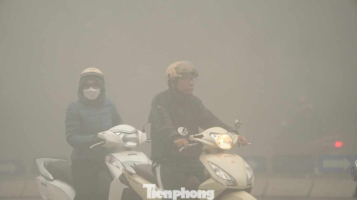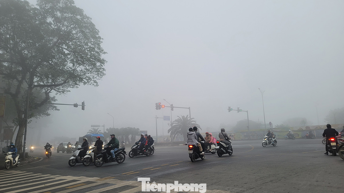 | Ngay từ đầu giờ sáng, sương mù dày đặc giăng kín đường phố Thủ đô. |