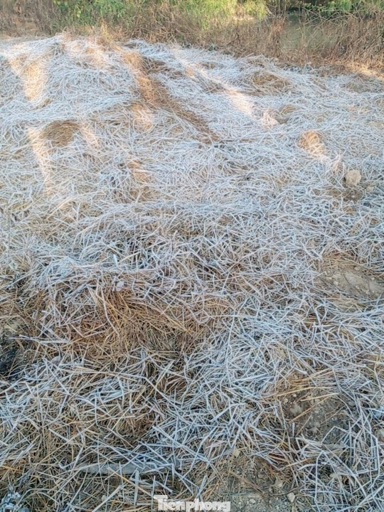 Mặc dù trời hửng nắng nhưng trên sườn đồi, núi ở xứ Lạng vẫn đọng từng mảng sương muối .Ảnh: Duy Chiến
