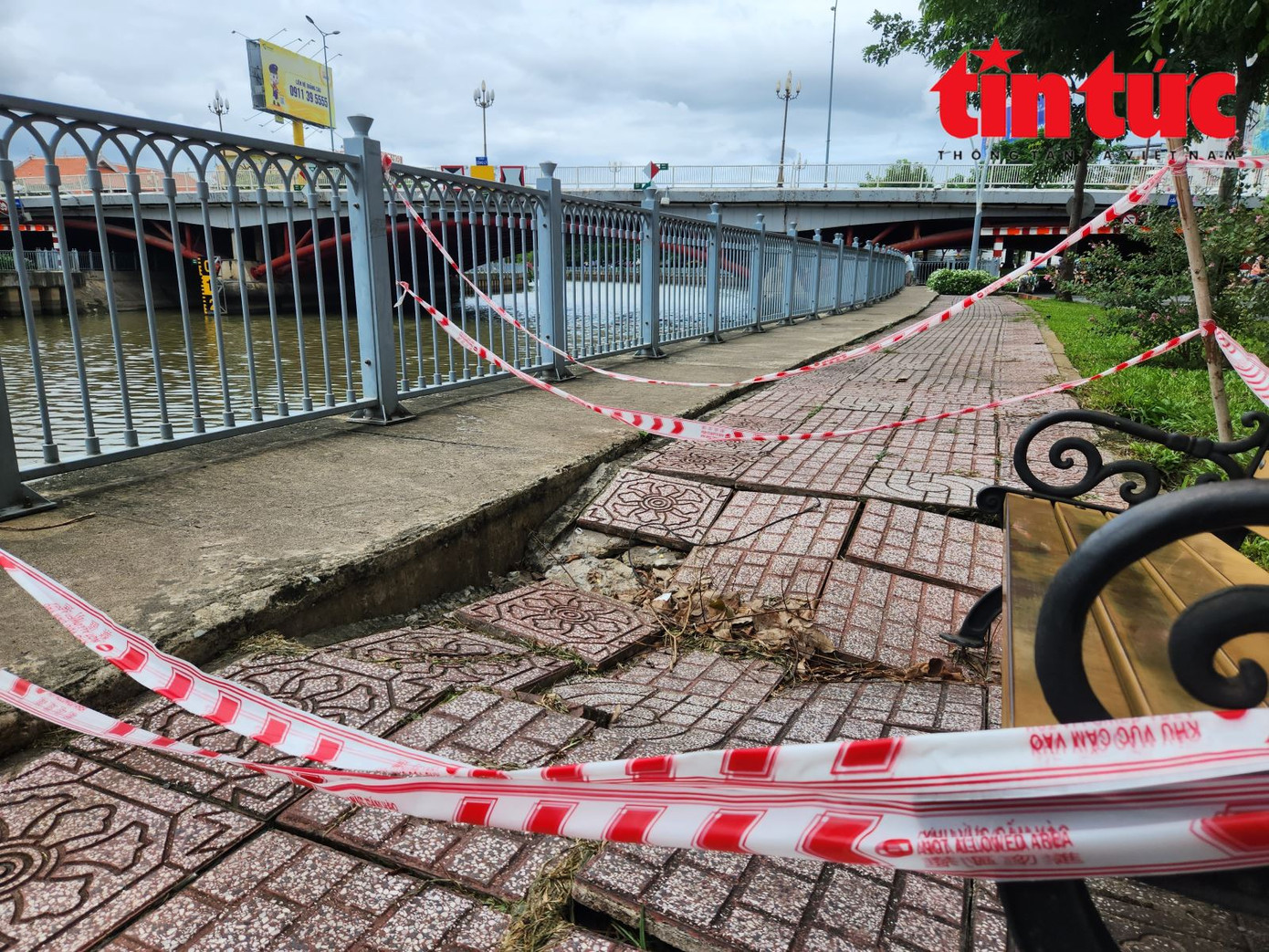 | Hiện trường sụt lún bất thường vỉa hè kênh Nhiêu Lộc - Thị Nghè. |