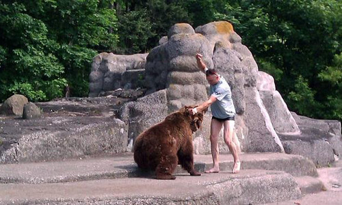 Một người qua đường ghi lại được cảnh tượng vị khách leo tường và tiếp cận con gấu cái to lớn đang ngồi trên tảng đá trong vườn thú ở thành phố Warsaw, Ba Lan, và sau đó đăng ảnh lên mạng. Trong số những bức hình chụp được có tấm con gấu ngoạm tay kẻ đột nhập nhưng sau đó bỏ đi khi bị anh ta đấm vào đầu.
