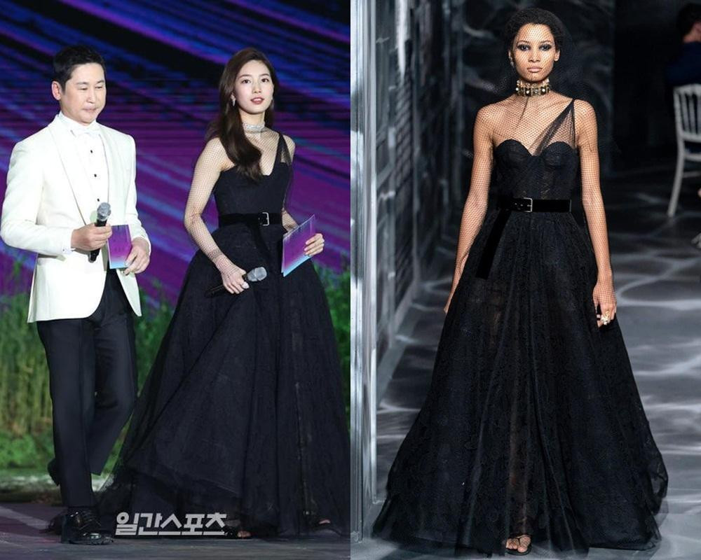 Còn nhớ tại lễ trao giải Baeksang 2020, Suzy đã khiến mọi người trầm trồ khi trở thành nữ nghệ sĩ Hàn đầu tiên được mặc váy Haute Couture của Dior lên thảm đỏ một sự kiện trong nước. Tuy nhiên, netizen lại cho rằng nhìn Suzy mặc bộ váy này không được thanh thoát nhẹ nhàng như mẫu.