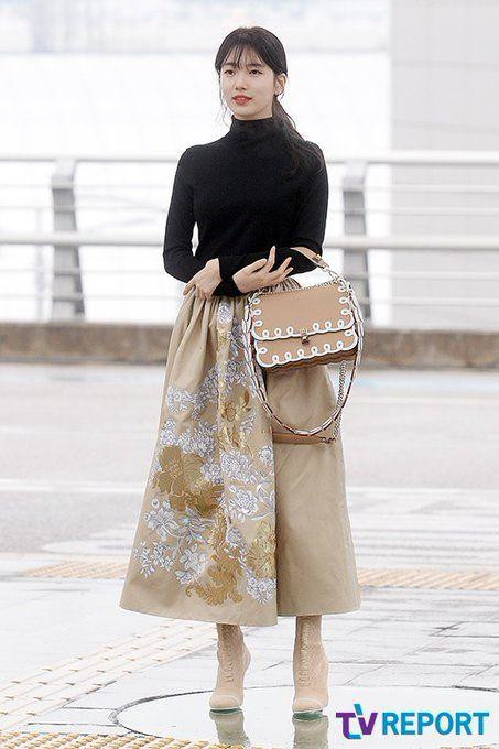 Chỉ là set đồ mặc ra sân bay thôi mà Suzy cũng sang chảnh đúng chuẩn quý cô. Netizen đều khuyên Suzy nên theo đuổi phong cách ăn mặc trang nhã, cổ điển như thế này.