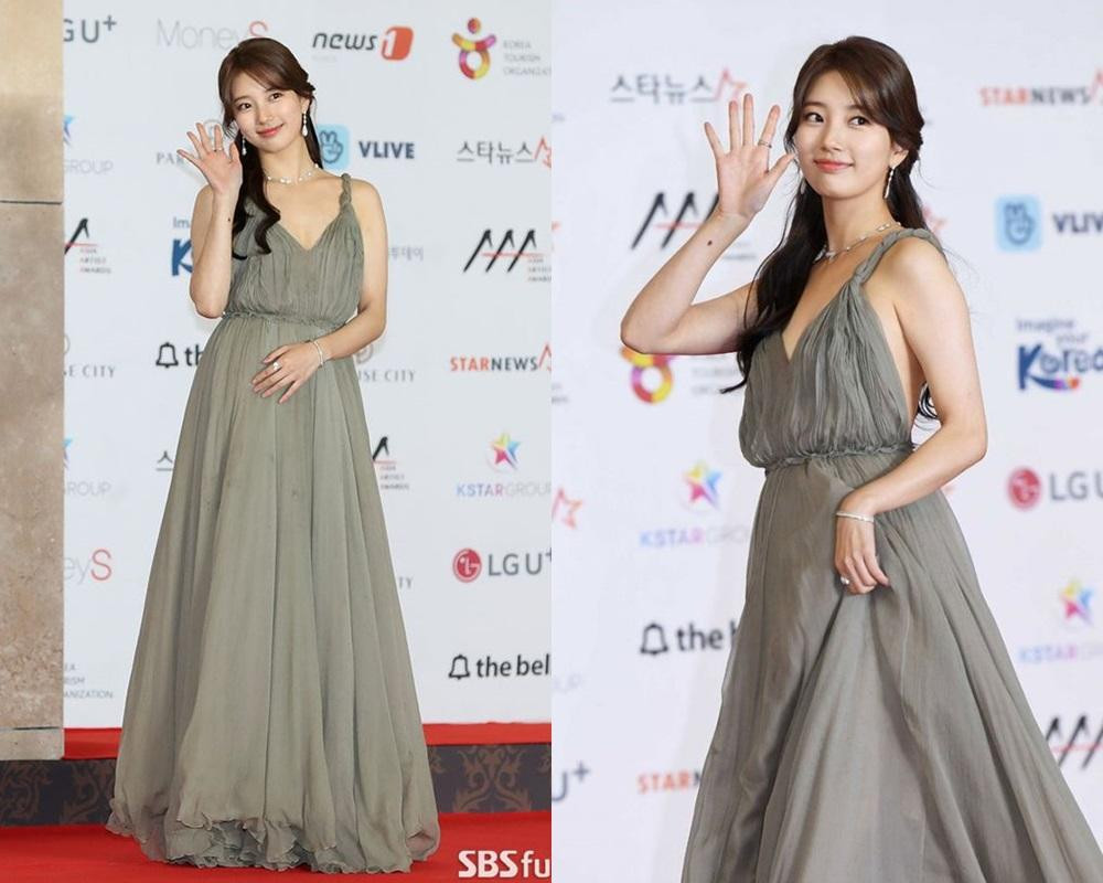 Tuy thất bại với cả hai thiết kế Haute Couture nhưng Suzy đã từng nhận rất nhiều lời khen khi diện những mẫu váy trong bộ sưu tập thông thường của Dior. Như chiếc váy màu xanh nhẹ nhàng thướt tha này đã giúp Suzy được khen đẹp như nữ thần.