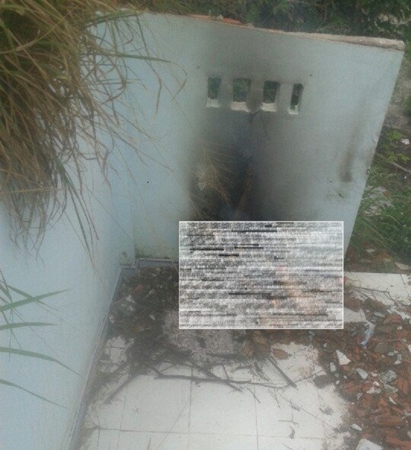 Vào đến nơi, nhiều người hoảng hồn khi thấy thi thể người phụ nữ bị đốt cháy đen, tay vẫn đang bị cột trên cửa sổ bằng một sợi dây vải nên báo cơ quan chức năng.