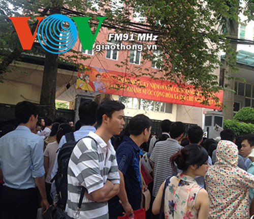 Hàng trăm người đã quây kín cổng trụ sở để chen chân nhau vào nộp hồ sơ. Số lượng người và phương tiện quá đông, tràn xuống cả lòng đường khiến cho giao thông trên đường Giảng Võ bị cản trở. Các phương tiện phải di chuyển chậm và nối đuôi nhau dài cả cây số.