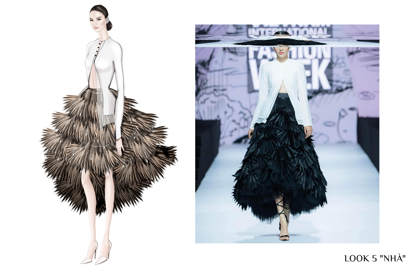 "Thiết kế của anh quá giống với LOOK 5 trong hệ thống phác thảo Đồ án 4 tên "NHÀ". Cảm giác của em lúc nhìn thấy mẫu, em bị đơ cứng cả người. Em cảm giác đây là mẫu test của thiết kế của em và em nghĩ rằng không thể nào anh chưa từng xem qua Sketch của em hay hệ thống nghiên cứu này của chính em. Vì anh là người đã từng đến trường em chấm đồ án đấy. Em không biết quá trình anh xây dựng BST “Về nhà Út ơi!” thế nào. Không biết anh có tham khảo ai hay có học hỏi, vay mượn ai hay không? Chỉ có chính bản thân anh trả lời được mình có làm hay không mà thôi...”, NTK CatCO viết trên trang cá nhân.