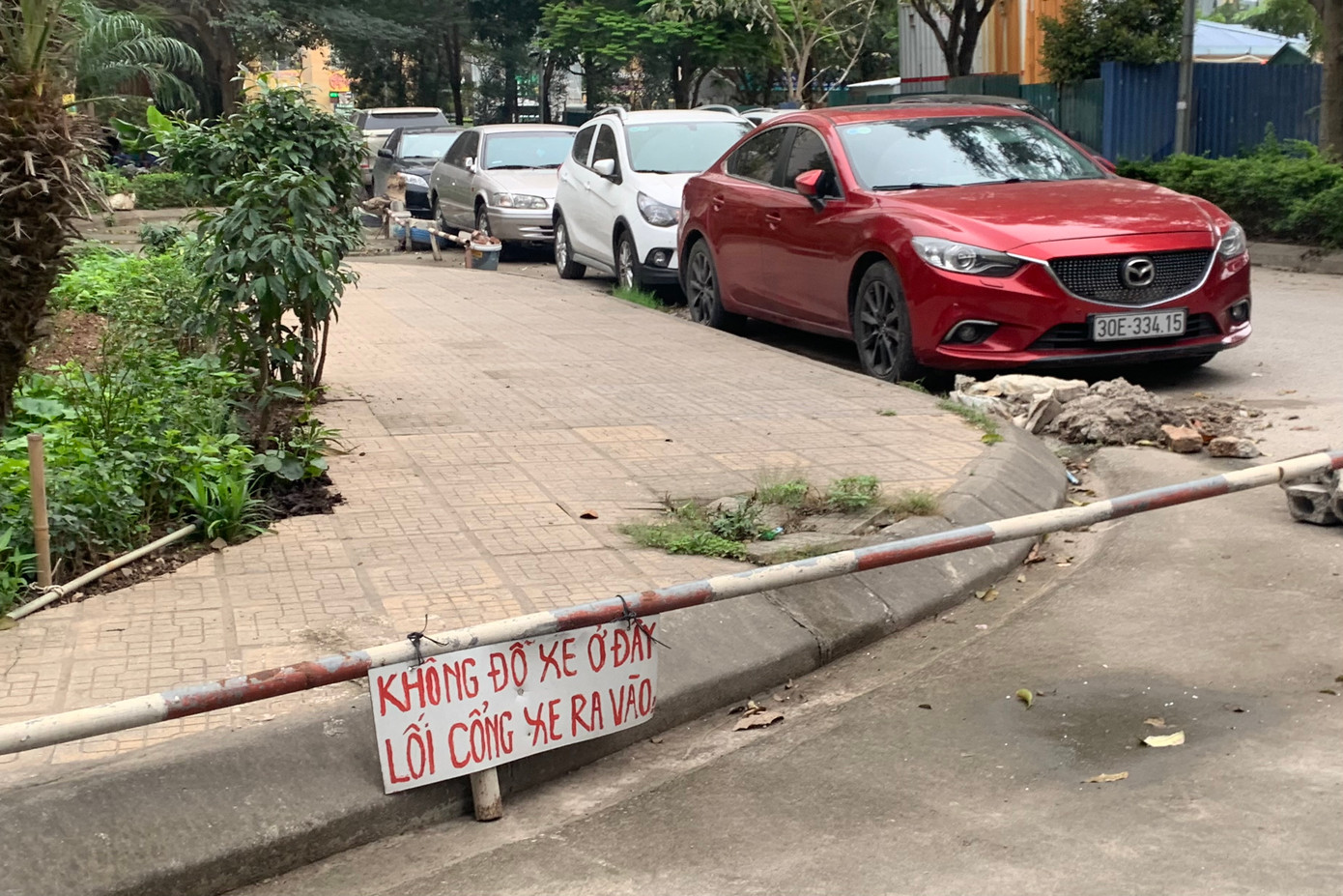| Hàng rào được dựng lên khắp nơi để ngăn ô tô "lấn chiếm". |