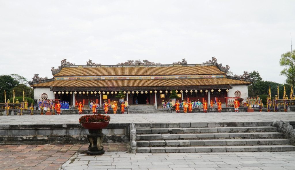 Tại đây, các quan sẽ dâng biểu chúc mừng nhà vua. Các quan truyền chỉ ban ân của vua trong dịp Nguyên đán với các nghi thức trang nghiêm.