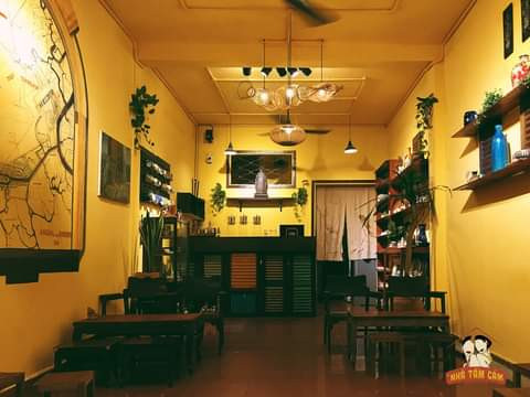 Tiệm tọa lạc ngay dưới chân Cầu Dừa (phường 5, Quận 4, TP.HCM), được décor hệt như những căn nhà trong hẻm của Sài Gòn xưa. Không gian ấm cúng với những bộ bàn ghế gỗ có kiểu dáng cổ điển và tông màu nâu trầm ấm.