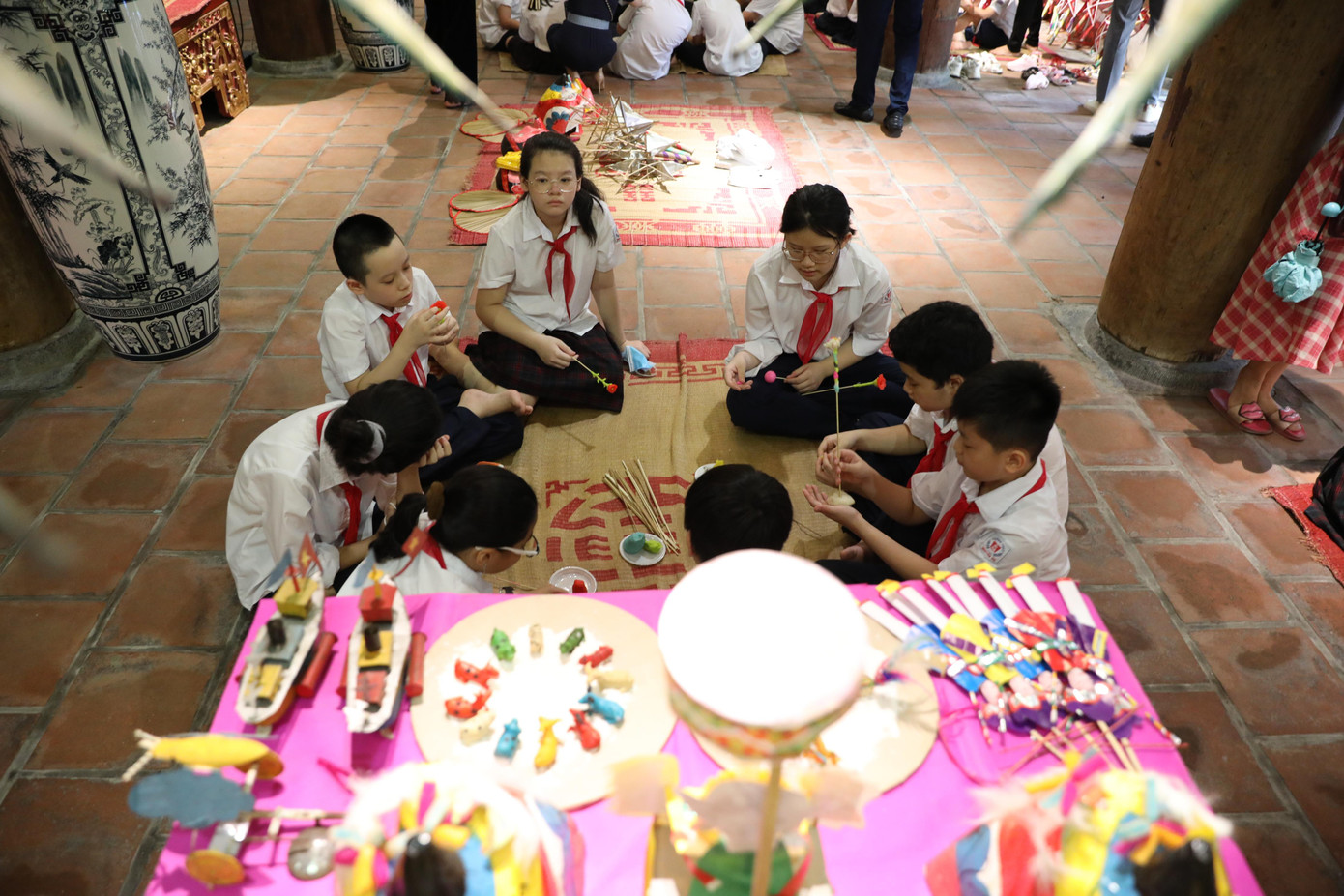Cùng với đó, để thêm phần đa dạng các hoạt động văn tại Phố đi bộ Phùng Hưng, Ban tổ chức còn sắp đặt các gian hàng giới thiệu về đồ chơi, các nghệ nhân và thợ thủ công hướng dẫn cách làm đồ chơi truyền thống: Đèn Ông sao, Ông Tiến sĩ, Ông đánh gậy; Đèn kéo quân; Tàu thủy bằng sắt tây; Mặt nạ giấy bồi; Tò he đất; Lẵng con giống bằng Bông; Con giống Tò he; Chuồn chuồn Tre; Diều giấy; Quạt Chàng Sơn; Đồ chơi Trí Uẩn.