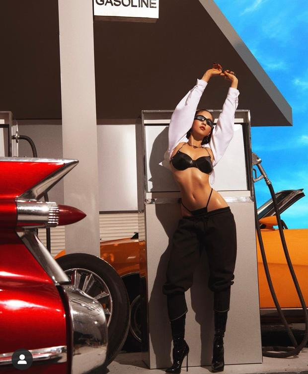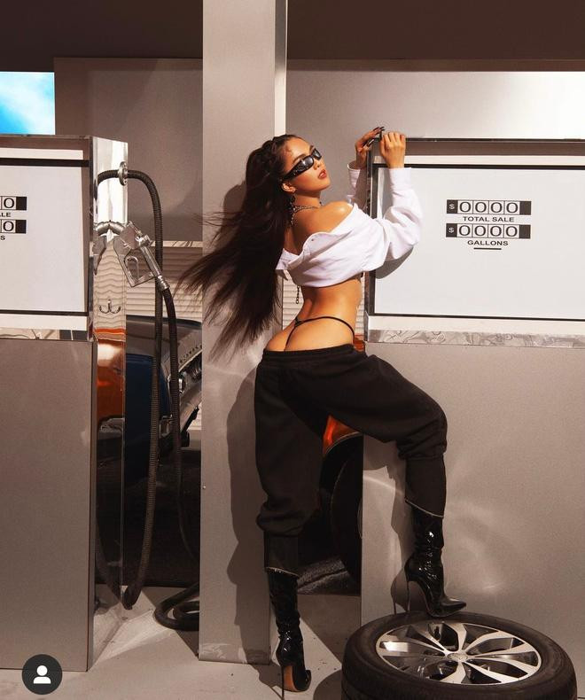 Đã vậy, cô còn kéo trễ quần ngoài để khoe một phần vòng 3 lấp ló phía sau nội y mỏng manh bé xíu, tạo dáng uốn éo hết cỡ để khoe vòng hông nảy nở. Những bức hình này đã bị một bộ phận cư dân mạng cho là vượt quá ranh giới gợi cảm và có thể bị xem là phản cảm.