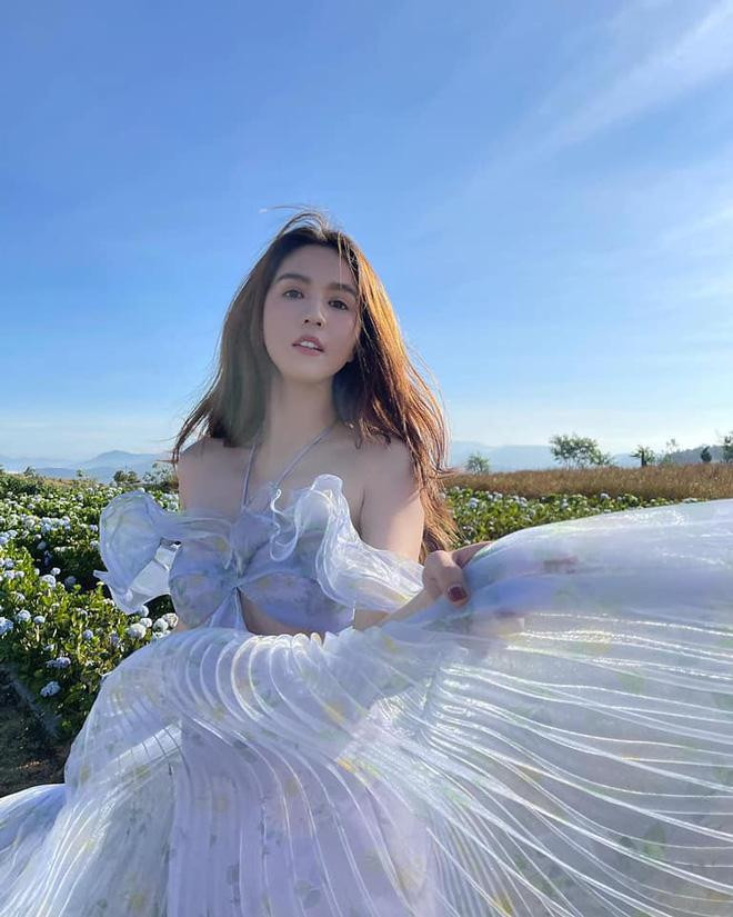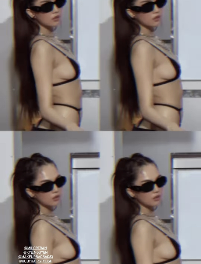 Trước đó, Ngọc Trinh đã hé lộ ảnh hậu trường bộ ảnh này. Không chỉ chiếc quần mỏng manh mà áo lót Ngọc Trinh mặc cũng bé đến mức khó tin, để lộ gần hết vòng 1.
