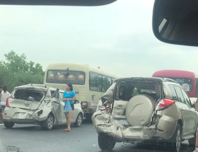 Thông tin ban đầu tại hiện trường: hai xe con hư hỏng nặng, vỡ nát toàn bộ phần đuôi xe; ba xe khách hư hỏng nhẹ hơn. Hiện chưa có thông tin thiệt hại về người.