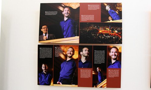 Những bức ảnh chụp ở mọi góc độ ghi lại những khoành khắc thể hiện nhiều cung bậc cảm xúc của người diễn thuyết – Nick trên sân khấu và ở thường ngày; những bạn trẻ chào đón Nick và những tấm gương vượt qua hoàn cảnh bệnh tật của Việt Nam…