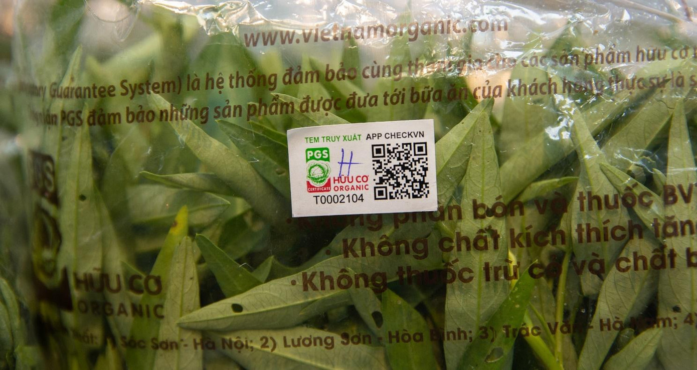 Để nhận biết và truy xuất nguồn gốc thực phẩm hữu cơ, tại Việt Nam, nhãn PGS đi kèm theo chữ HỮU CƠ (Organic) cùng những hình ảnh đặc trưng như logo nhận diện. Khi các sản phẩm gắn tem có mã QR cùng logo PGS có nghĩa đã được kiểm tra, giám sát và công nhận bởi hệ thống PGS. Với tiêu chuẩn GAP, các sản phẩm có chứng nhận GAP được đóng gói trong bao bì với logo VietGAP/GlobalGAP/JGAP và mã QR.