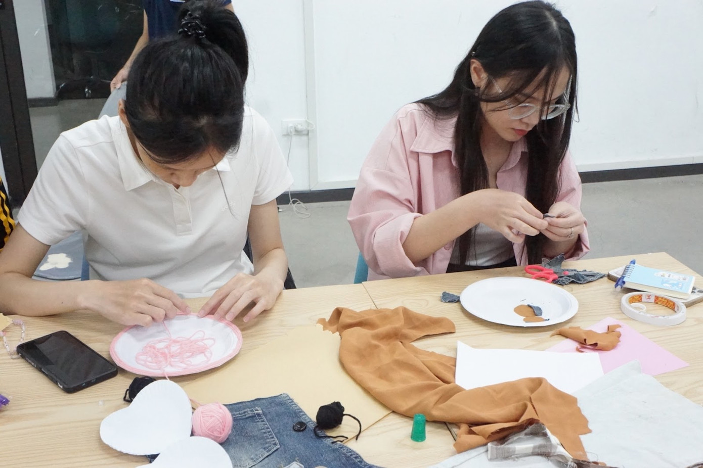 Sau phần khởi động, hoạt động chính của workshop bắt đầu với phần sáng tạo tranh từ vật liệu tái chế với chủ đề “Trái đất tương lai”. Các bạn sinh viên sẽ chia theo nhóm nhỏ và được Ban tổ chức phát các “nguyên liệu” đặc biệt: đĩa nhựa dùng một lần, nút chai, giấy báo cũ, ống hút, vải cũ,… Không còn là những vỏ hộp nhàu nhĩ hay giấy báo bị vứt đi, dưới bàn tay của các bạn trẻ, những vật dụng đã qua sử dụng được “hô biến” thành những bức tranh 3D xinh xắn.