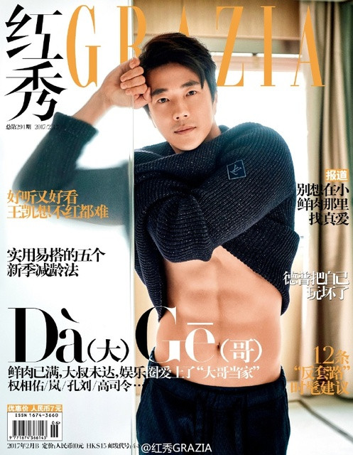Kwon Sang Woo khoe cơ bụng 6 múi trên bìa tạp chí Grazia Trung Quốc số tháng 2.