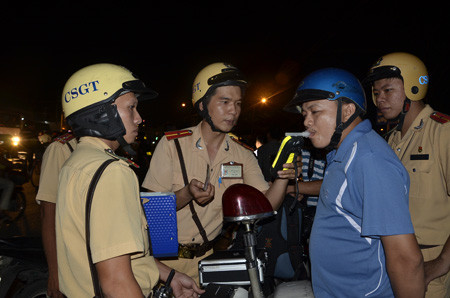 Trong vòng hơn một tiếng đồng hồ, ít nhất 3 người vi phạm nồng độ cồn đã bị lập biên bản xử phạt.