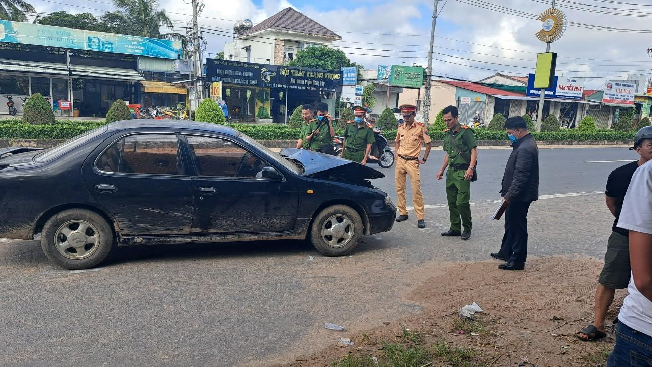 Cú tông mạnh khiến đầu ô tô biến dạng. Một trong hai nữ sinh đi trên xe máy bị thương rất nặng, sau đó tử vong trên đường đi cấp cứu.