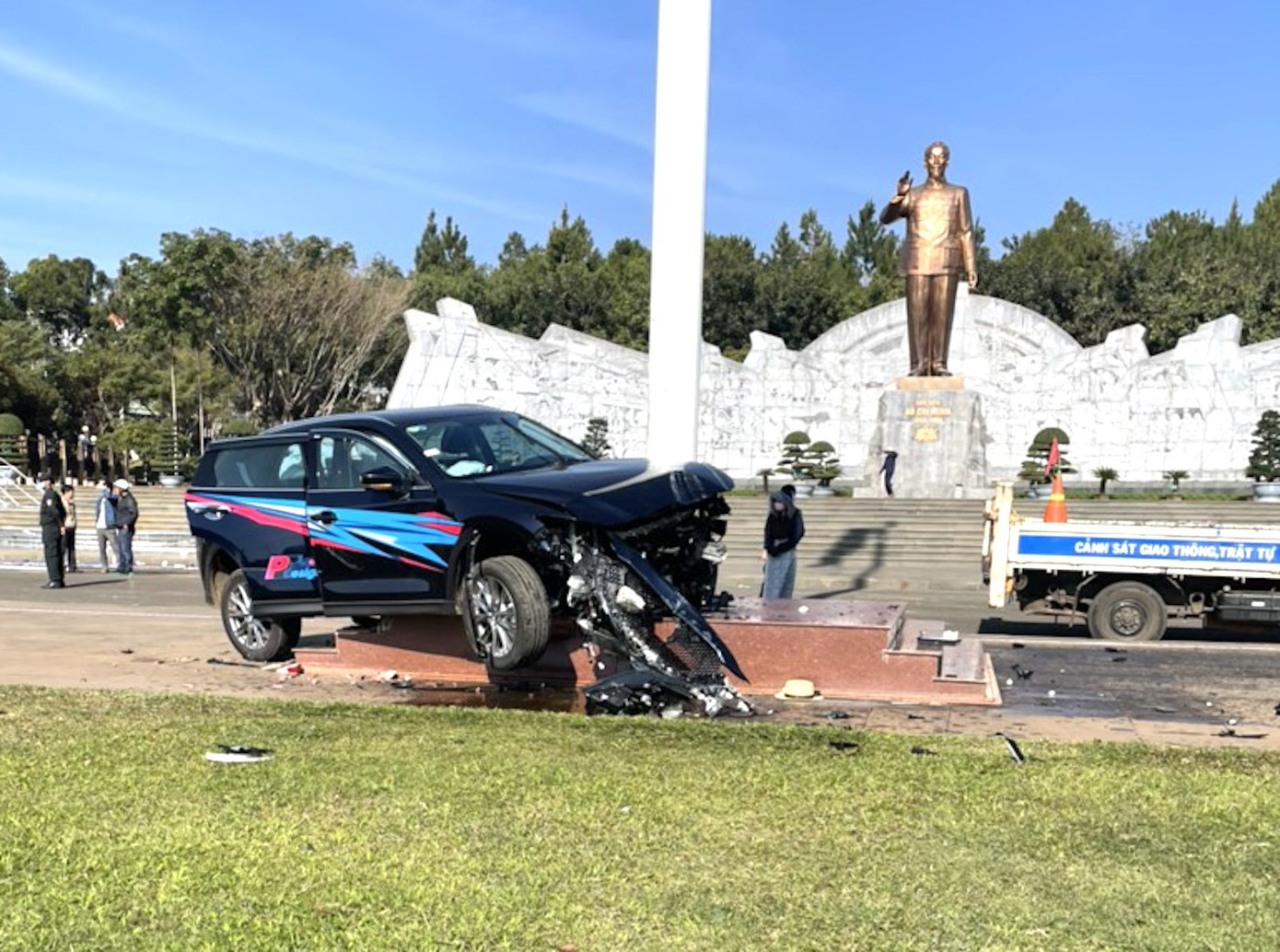 Trước đó, khoảng 8h30 ngày 25/1, ông Thiện điều khiển ô tô BKS 81A-234.42 lưu thông trên đường Trần Hưng Đạo. Khi đến Quảng trường Đại Đoàn Kết, tài xế này không làm chủ được tay lái nên xảy ra va chạm với xe máy BKS 81B2-859.56 đang dựng ở vỉa hè. Tiếp đó, ô tô do ông Thiện điều khiển lao về phía trước, chỉ dừng lại khi đâm vào trụ cờ ở Quảng trường Đại Đoàn Kết làm công trình này bị hỏng nặng.