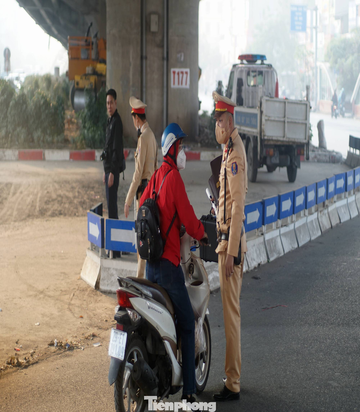 Sáng sớm cùng ngày, tổ công tác Đội CSGT đường bộ số 7 (Phòng CSGT, Công an TP Hà Nội) làm nhiệm vụ bảo đảm an ninh trật tự, an toàn giao thông và xử lý vi phạm tại ngã tư Khuất Duy Tiến - Nguyễn Trãi - Nguyễn Xiển (Thanh Xuân, Hà Nội).