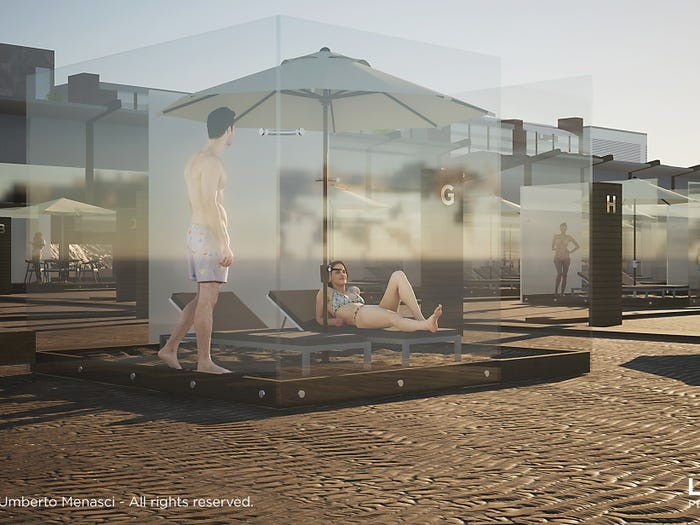Mùa Hè đã đến và hầu hết chúng ta đều muốn ra biển, song với tình hình COVID-19 diễn biến phức tạp, đi du lịch biển không phải một ý tưởng hấp dẫn ở thời điểm hiện tại. Vì thế nhà thiết kế người Ý Umberto Menasci đã đề xuất một giải pháp mang tên “Safebeach”. Đây là một ý tưởng sử dụng các khối hộp làm bằng kính acrylic để chia bãi biển thành nhiều khu vực khác nhau, giúp khách du lịch vừa tắm biển mà vẫn đảm bảo quy định cách ly xã hội.
