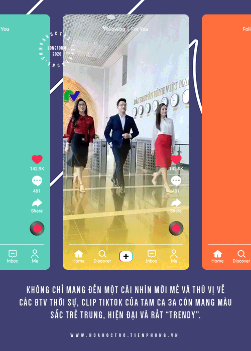 Không chỉ mang đến một cái nhìn mới mẻ và thú vị về các BTV thời sự, clip TikTok của tam ca 3A còn mang màu sắc trẻ trung, hiện đại và rất “trendy”. Vì thế mà những sản phẩm này đều được khán giả, đặc biệt là giới trẻ đón nhận nhiệt tình, ai cũng phải gật gù thừa nhận hình tượng các BTV Thời sự chưa bao giờ dễ thương và gần gũi đến thế!