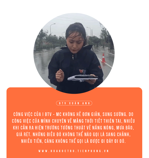 Trong lúc thiên tai thì cũng đâu thể tranh thủ chuyến đi để khám phá thêm điều gì như khi ta đi du lịch được. Lúc đi làm còn có khi không được tắm giặt cho tử tế, chỉ biết chạy cho kịp deadline. Tuy nhiên, đó chỉ là ở mảng thời tiết của mình, còn nói rộng ra các anh chị em BTV - MC mảng khác, sẽ có những vất vả theo kiểu khác và cũng lam lũ lắm chứ không chỉ là sự hào nhoáng mà khán giả thấy qua màn ảnh nhỏ” - BTV Xuân Anh chia sẻ.