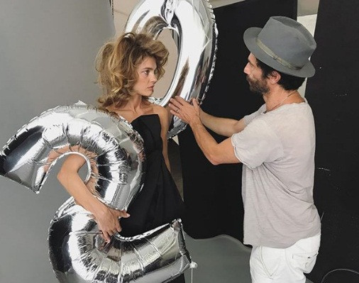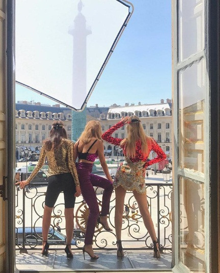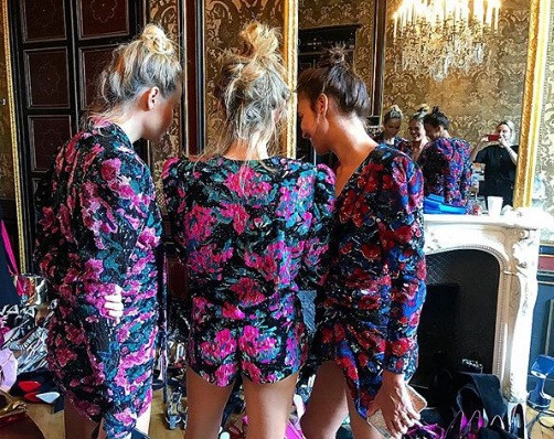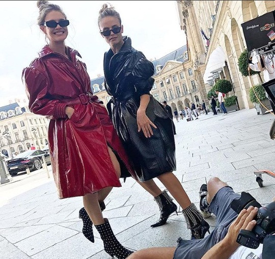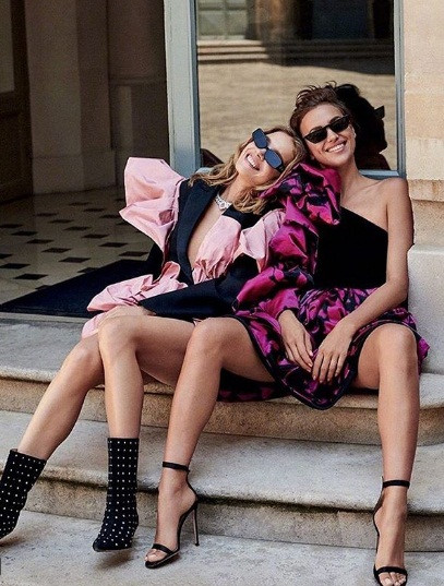 Ba nàng thơ nổi tiếng nhất làng mẫu Nga hiện nay diện đầm hoa của Saint Laurent by Anthony Vaccarello, kính đen Prada và đi giày của Gianvito Rossi.