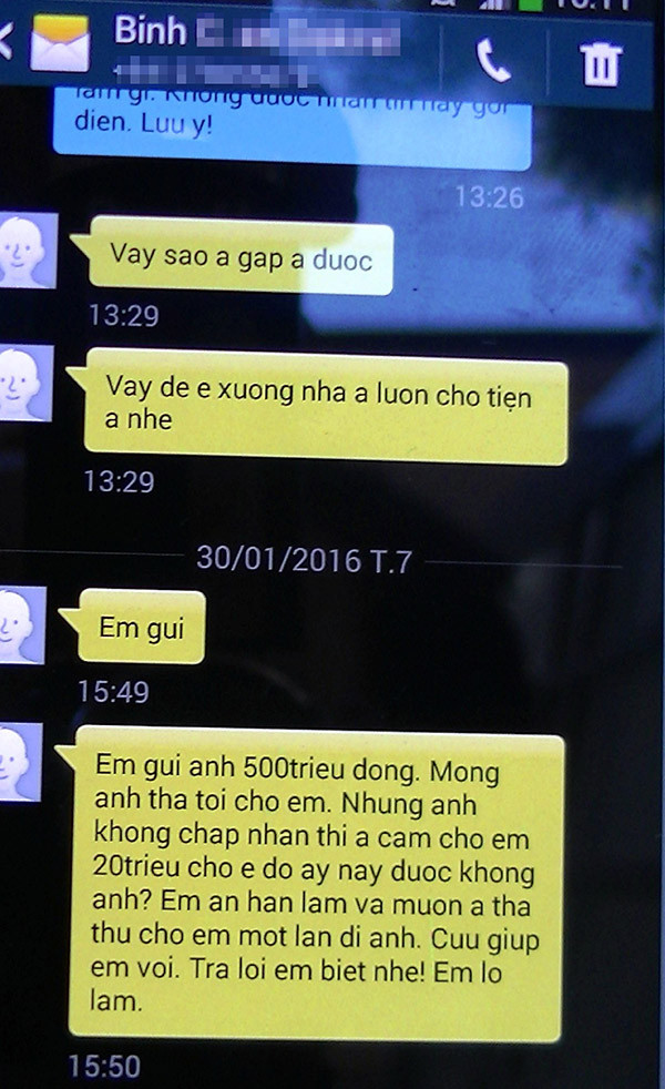 Ông Lợi còn gửi đến các cơ quan chức năng một số chứng cứ ghi âm, ghi hình, tin nhắn kèm nội dung ông tố trung uý Lãnh Thanh Bình đến nhà ông, đưa 200 triệu đồng “ làm quà” xin ông “tha cho”, nhưng ông từ chối. Trung úy B tiếp tục nhắn tin xin chi đậm số tiền lên đến 500 triệu đồng, nhưng ông Lợi từ chối.
