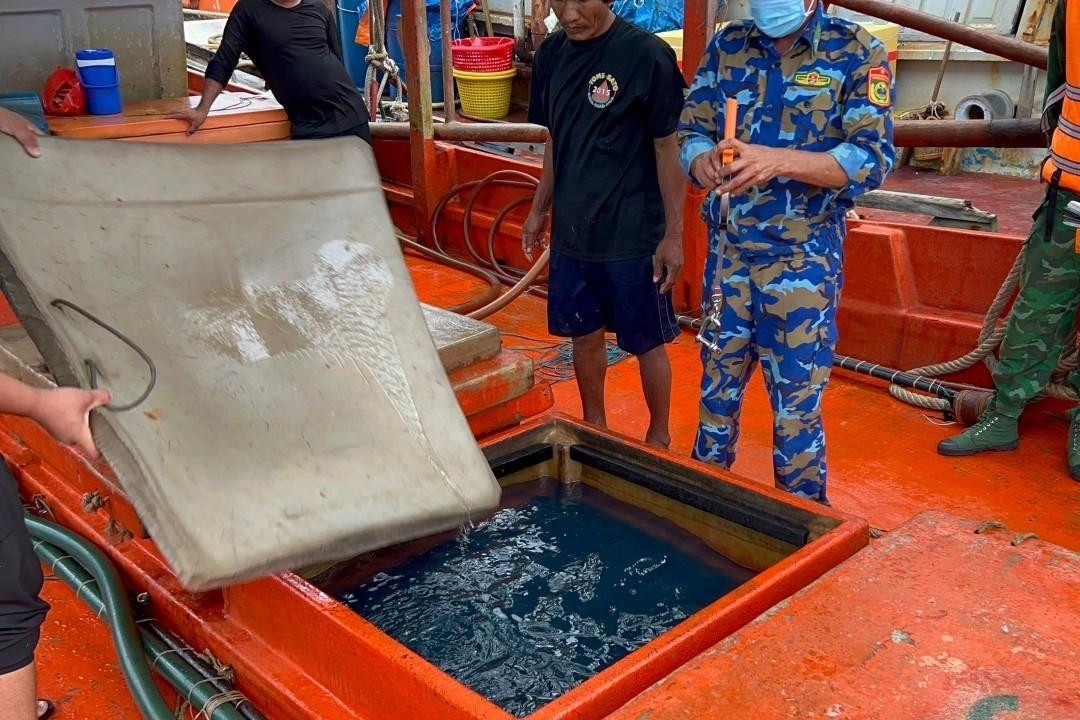 Qua đấu tranh, khai thác, cộng với công tác nghiệp vụ kiểm đếm, đo đạc, phân tích trong các khoang trên 2 tàu trên chứa trên 62.000 lít dầu DO.