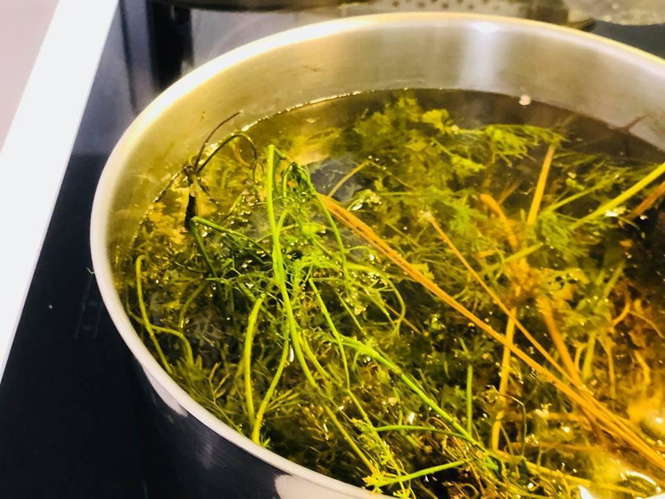 - Để có được nồi nước thơm tắm cho cả nhà, bó lá mùi được rửa sạch sẽ, không để nát lá rồi cho vào nồi nước đun sôi kỹ. Chỉ cần 2 bó thôi cũng đủ để bạn có nồi nước tắm to, mùi hương nhẹ nhàng, dễ chịu, dùng cho cả nhà.
