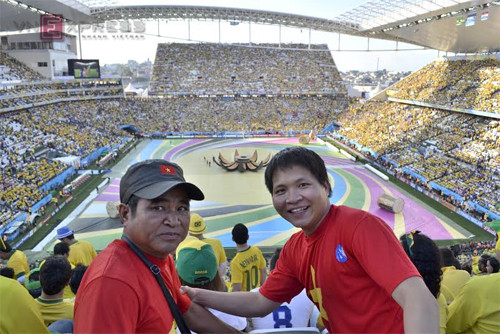"Để hình ảnh lá cờ Việt Nam lọt vào ống kính truyền hình, được chiếu trên khắp thế giới là nhờ sự may mắn vô cùng lớn. Tôi bắt đầu đặt mua vé trên trang chủ FIFA từ tháng 7/2013. Tới tháng 11/2013 FIFA gửi xác nhận trúng vé. FIFA tiến hành bốc thăm chọn lựa ngẫu nhiên, tôi may mắn như trúng số độc đắc khi có được ghế A1, A2, block 119, vị trí đẹp để lọt vào máy quay truyền hình", chàng trai hiện làm cho Đại sứ quán Việt Nam tại Brazil chia sẻ.
