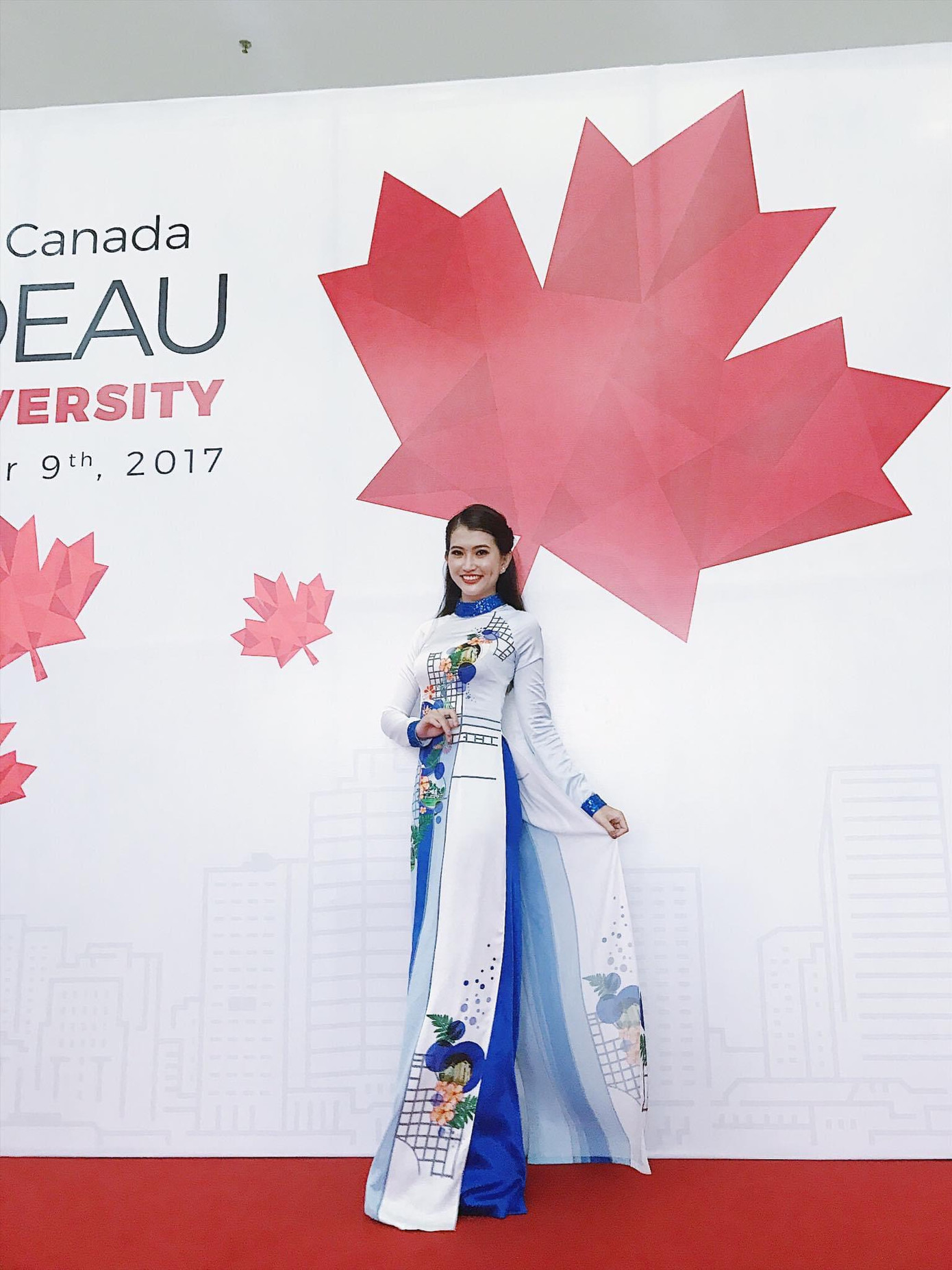 Sau đó, tôi tiếp tục tham gia vào Đội Lễ tân Đại học Tôn Đức Thắng – CLB đại diện hình ảnh cho Nhà Trường trong các sự kiện. Tại đây, tôi được học học hỏi về những kỹ năng, những tác phong chuyên nghiệp, thanh lịch khi xuất hiện trong các sự kiện giúp tôi biết để ý và chuẩn bị cho mình một tác phong tốt hơn. CLB đã cho tôi cơ hội, cho tôi niềm vinh hạnh khi được đón tiếp các nhân vật đặc biệt, có tầm ảnh hưởng trong và ngoài nước đến thăm Trường tôi. Trong đó, có một kỷ niệm đáng nhớ đó là nhân dịp Thủ tướng Canada – Justin Trudeau ghé thăm Trường Đại học Tôn Đức Thắng và tôi đã nhận được cái bắt tay ấm áp từ ngài.