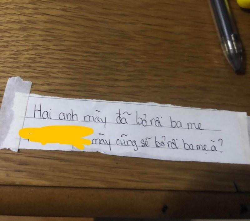 Mặc dù trong quá trình ôn thi nữ sinh có những lúc mệt mỏi, áp lực và lười biếng nhưng chỉ cần nghĩ bản thân sẽ phụ lòng bố mẹ là lại cố gắng. Chính vì thế nữ sinh đã viết ra dòng chữ: "Hai anh mày đã bỏ rơi ba mẹ, mày cũng sẽ bỏ rơi ba mẹ à?", đây dường như chính là "thông điệp" mà cô bạn tự nhắc nhở chính bản thân mình.