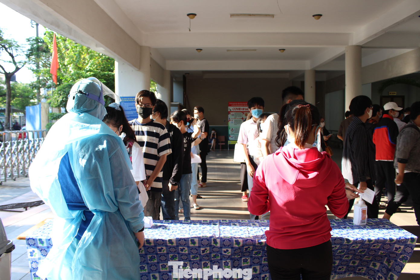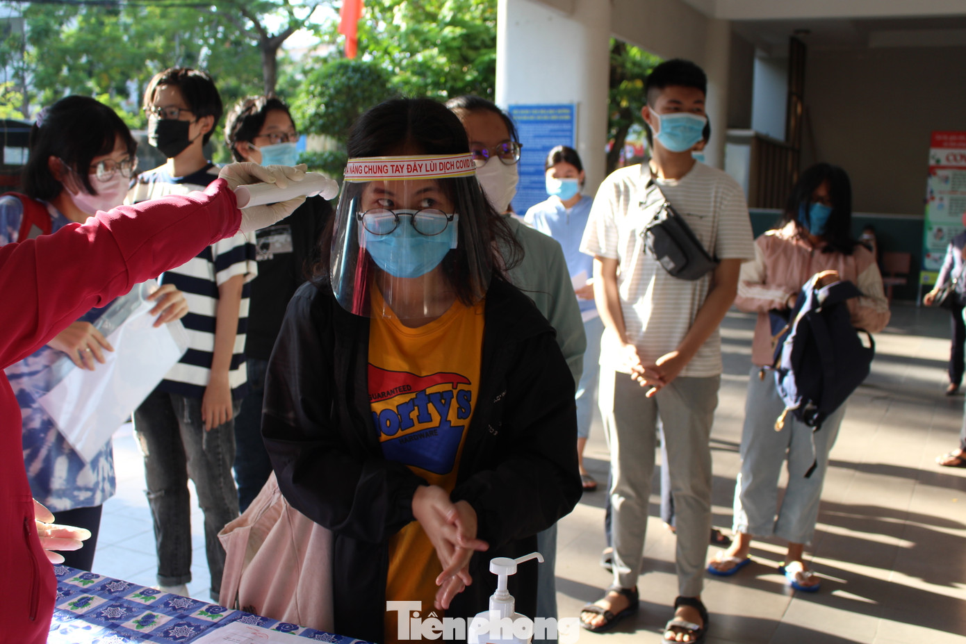 Mỗi nhóm 5 thí sinh sẽ tiến vào khu vực lấy mẫu để xét nghiệm. Theo em Mai Nguyên Anh (học sinh trường THPT Phan Châu Trinh), thời gian qua em cũng khá lo lắng vì tình hình dịch bệnh. "Khi được xét nghiệm SARS-CoV-2 trước kì thi, em và các bạn cảm thấy hoàn toàn yên tâm để bước vào kì th quan trọng này", Nguyên Anh cho hay. Ảnh: Giang Thanh