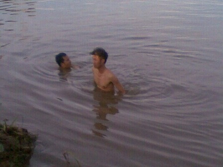 Tại khúc sông dưới chân cầu Khuể, Tiên Lãng, Hải Phòng, rất đông trẻ em tụ tập đùa dỡn giữa dòng nước sâu (ảnh: Quốc Đạt).