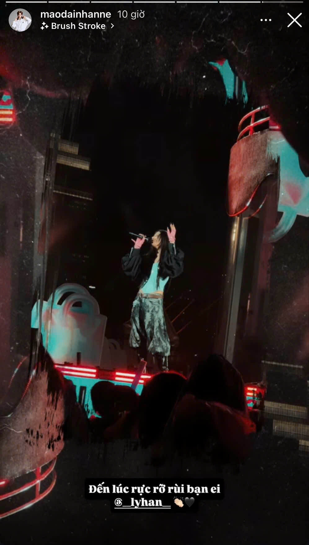 Cộng đồng mạng xôn xao trước Story của "Tân Binh Toàn Năng" Nguyễn Việt Hoàng (hay Mao Đại Nhân) khi anh chàng đăng hình ảnh biểu diễn của "Em xinh" Lyhan kèm lời “shout-out” cho màn trình diễn của cô bạn.
