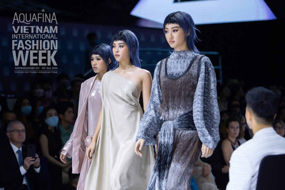 Á hậu Hoàn Vũ Thuý Vân và Kim Duyên cũng xuất hiện trong show diễn, bên cạnh Hoa hậu Hoàn Vũ Khánh Vân.