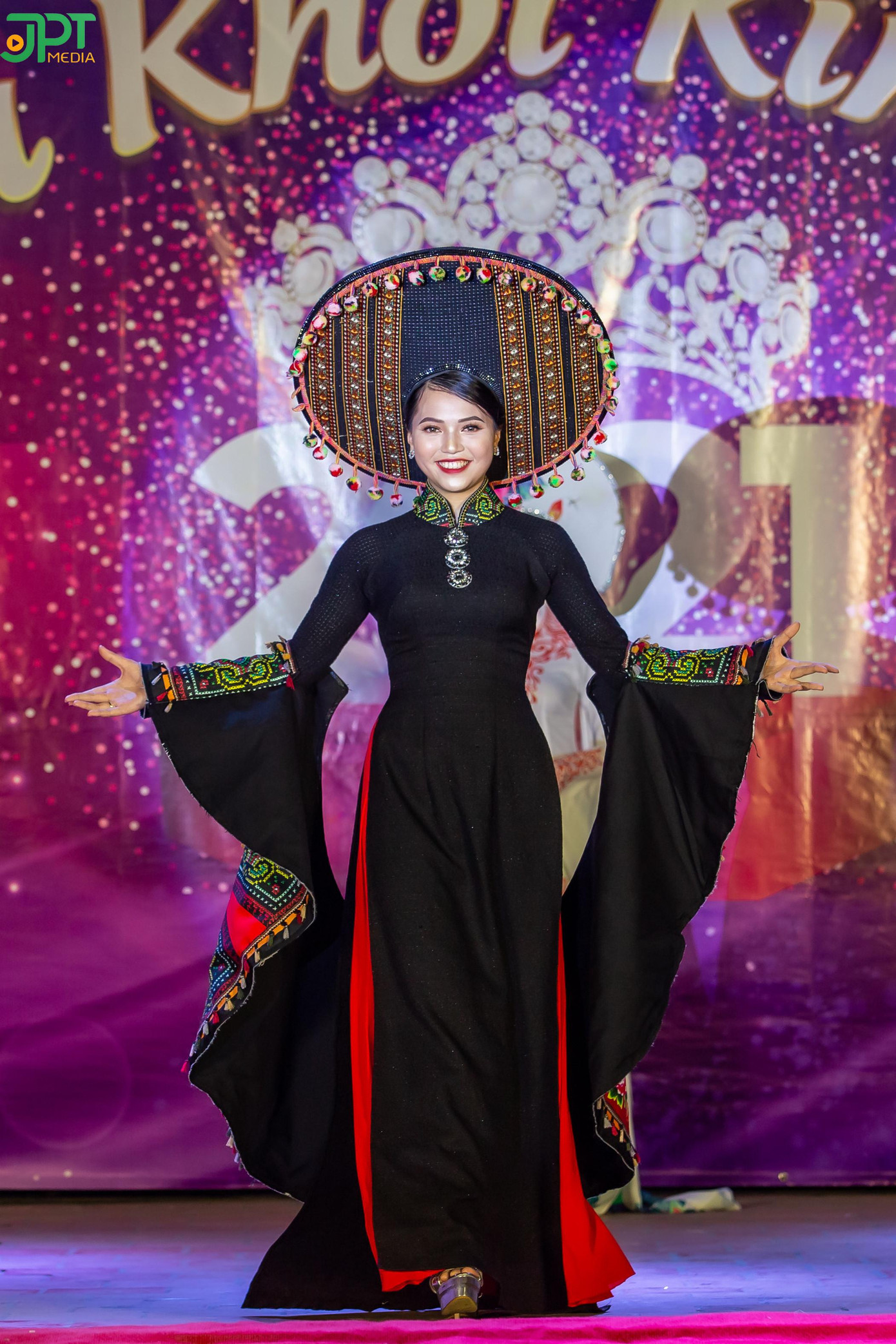 Trong phần thi áo dài Thanh Huyền đã lựa chọn cho mình một bộ trang phục khéo léo kết hợp giữa tà áo dài dân tộc và nét đẹp của các họa tiết thổ cẩm Tây Bắc. Qua bộ trang phục này Huyền chia sẻ rằng: “Em là một người con đến từ mảnh đất Yên Bái, từ nhỏ đã được tiếp xúc và lớn lên cùng những nét văn hóa đặc sắc, tươi đẹp của địa phương. Nên ngay trong đêm thi này em rất mong muốn có thể đưa những nét đẹp đó đến với nhiều người bạn ở các vùng miền khác nhau, để các bạn có thể một phần cảm nhận được văn hóa thổ cẩm của quê hương em!” Hình ảnh cô gái mang trong mình niềm tự hào với quê hương xứ sở cùng nụ cười tự tin sải bước trên sân khấu của một cuộc thi về nhan sắc và trí tuệ thật sự đã để lại ấn tượng sâu sắc trong lòng ban giám khảo cũng như khán giả của cuộc thi.