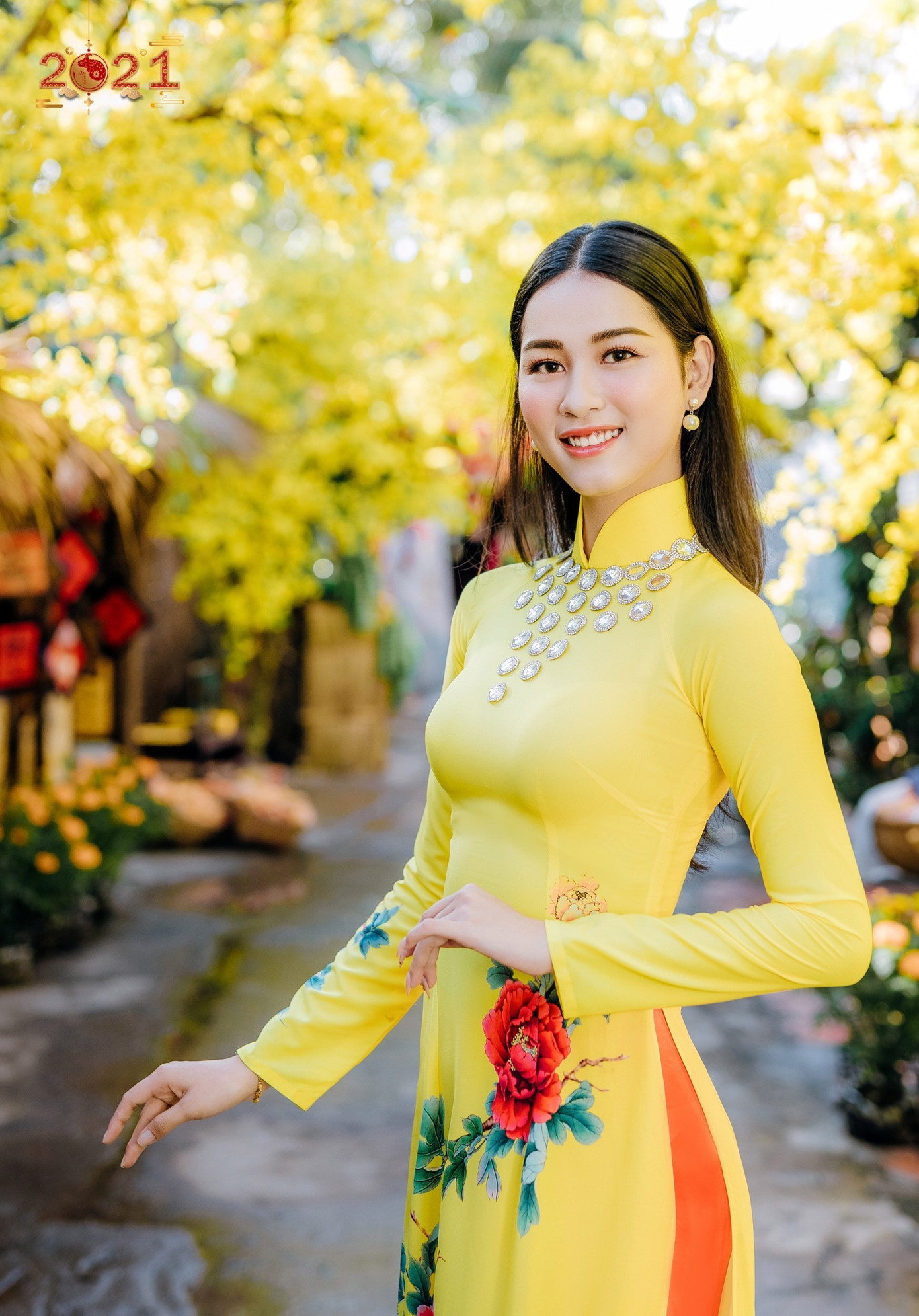 Mới đây, người đẹp Lê Thị Tường Vy tung loạt ảnh diện áo dài đón Tết nguyên đán 2021.