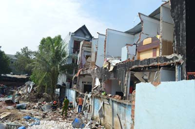TPO - Đến 11 giờ trưa 18/10, lực lượng chức năng vẫn đang phong toả hiện trường, điều tra nguyên nhân vụ nổ tại công ty Đặng Huỳnh (khu phố 5, phường Thới An, quận 12, TPHCM). Họ bới từng viên gạch, lật từng khúc cây, leo lên mái nhà, tìm kiếm thi thể nạn nhân.